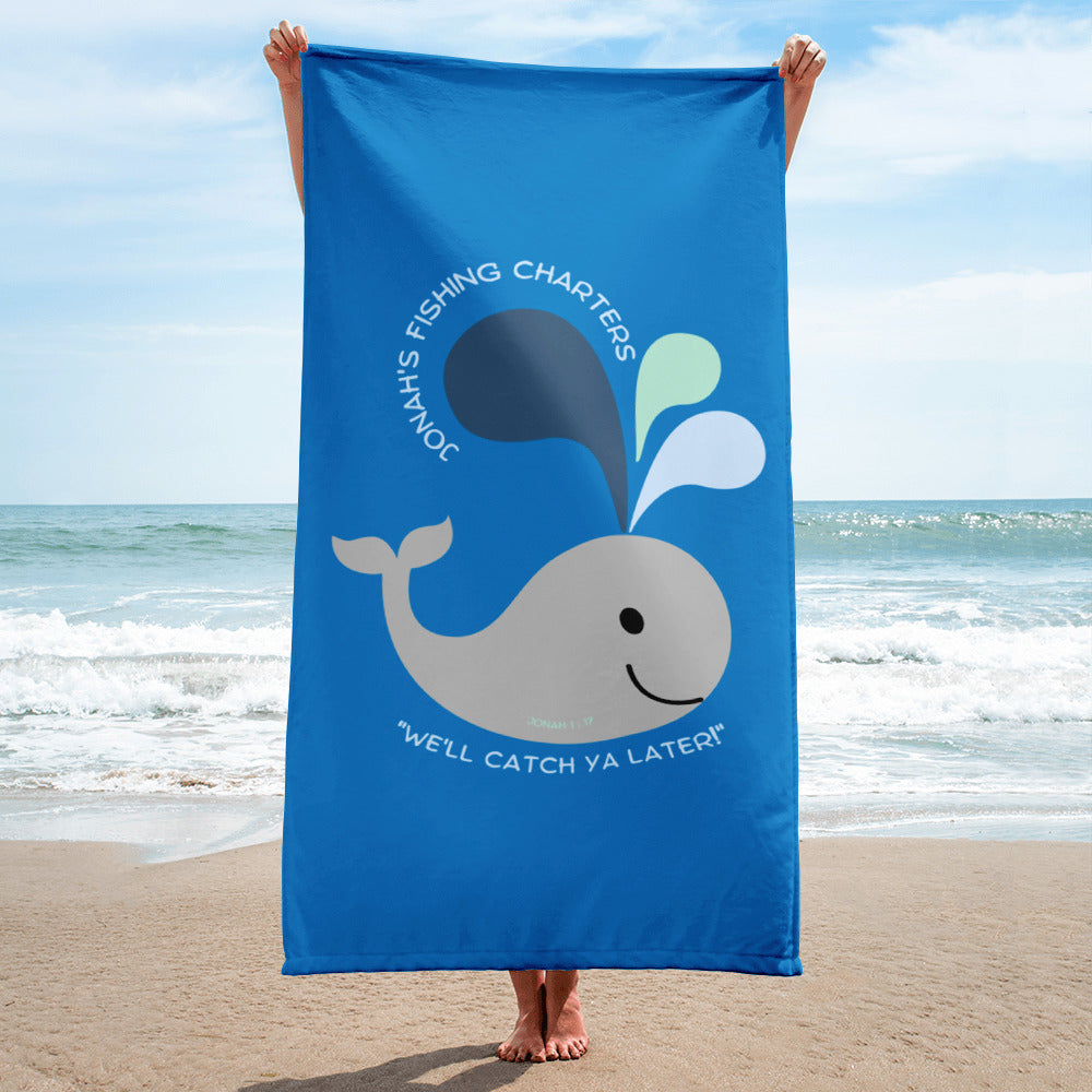Jonah's Fishing Charters "We'll Catch You Later" Beach Towel